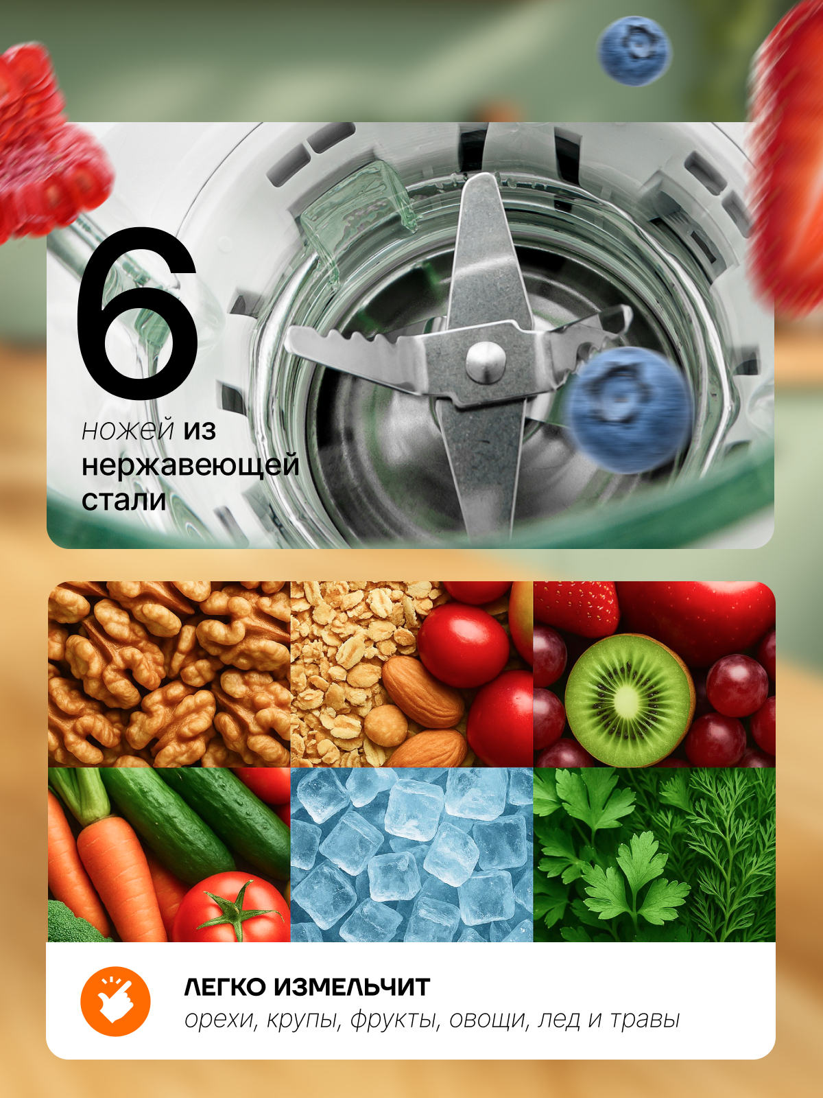 | Особенности конструкции | нескользящие ножки, отверстие для ингредиентов, отсек для шнура |
