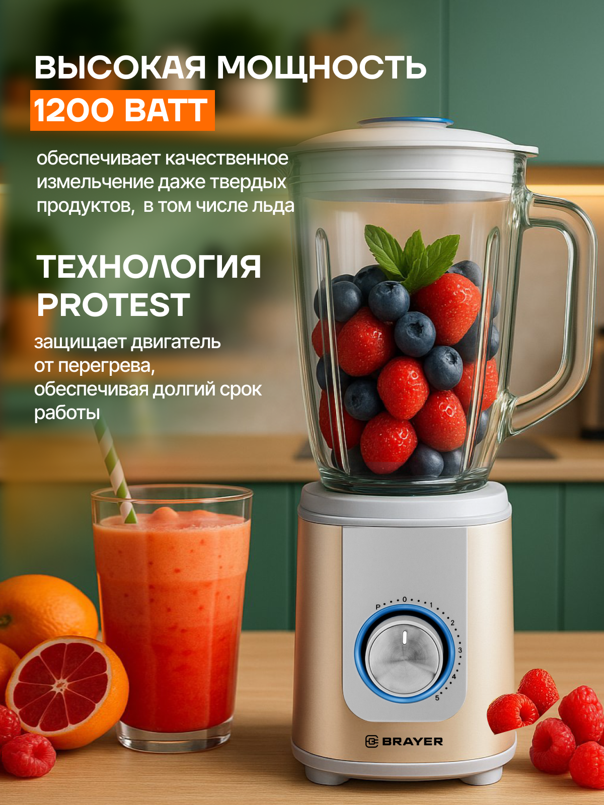 | Дополнительная информация | Блендер BRAYER BR1200BK 1800Вт чаша 1,8л стекло колка льда |