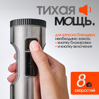 | Дополнительная информация | Защита при использовании: для работы блендера необходимо одновременно зажимать кнопки питания и снятия блокировки. |