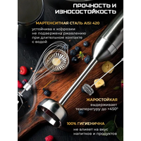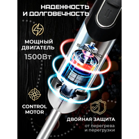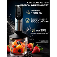 Блендер погружной от Savlaro станет незаменимым помощником для тех, кто хочет превратить кулинарное увлечение в профессиональную деятельность. Как часть кухонных приборов, он отлично справится с такими задачами, как приготовление вкусных смузи, картофельного, овощного или фруктового пюре, фарша, детского питания, молочной пены, десертов и прочего. Любители здорового питания будут в восторге от возможности приготовления свежих и натуральных смузи, молочных коктейлей и ореховых кремов. Этот мощный и качественный кухонный электроинструмент представляет собой надежную технику для дома, обладая 9 режимами работы. Блендер измельчитель с чашей электрический кухонный имеет мощный погружной мотор на 1500 Вт.