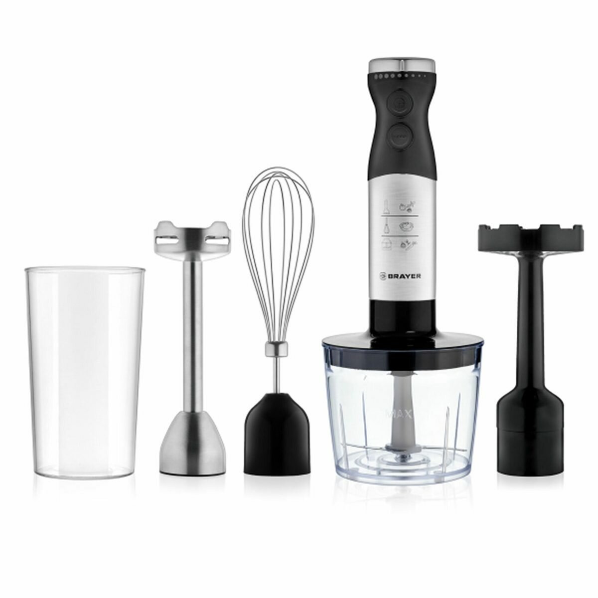 Купить Блендер погружной BRAYER (BR1244), 800 Вт, 2 режима, измельчитель, венчик, стакан, пюре, черный, 6 шт. с доставкой по всей России.