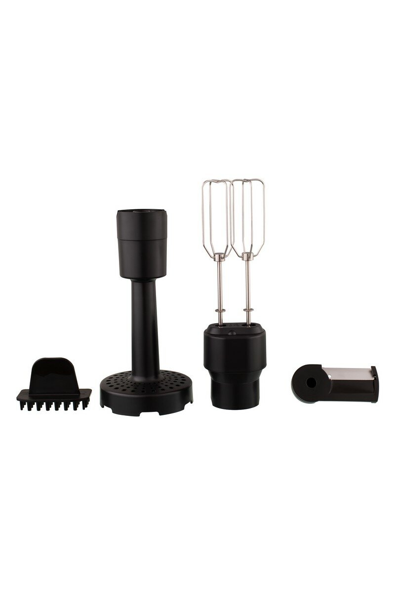 | Насадки | венчик для взбивания, диск для нарезки ломтиками, для замешивания теста, для приготовления пюре, измельчитель, насадка для шинковки |
