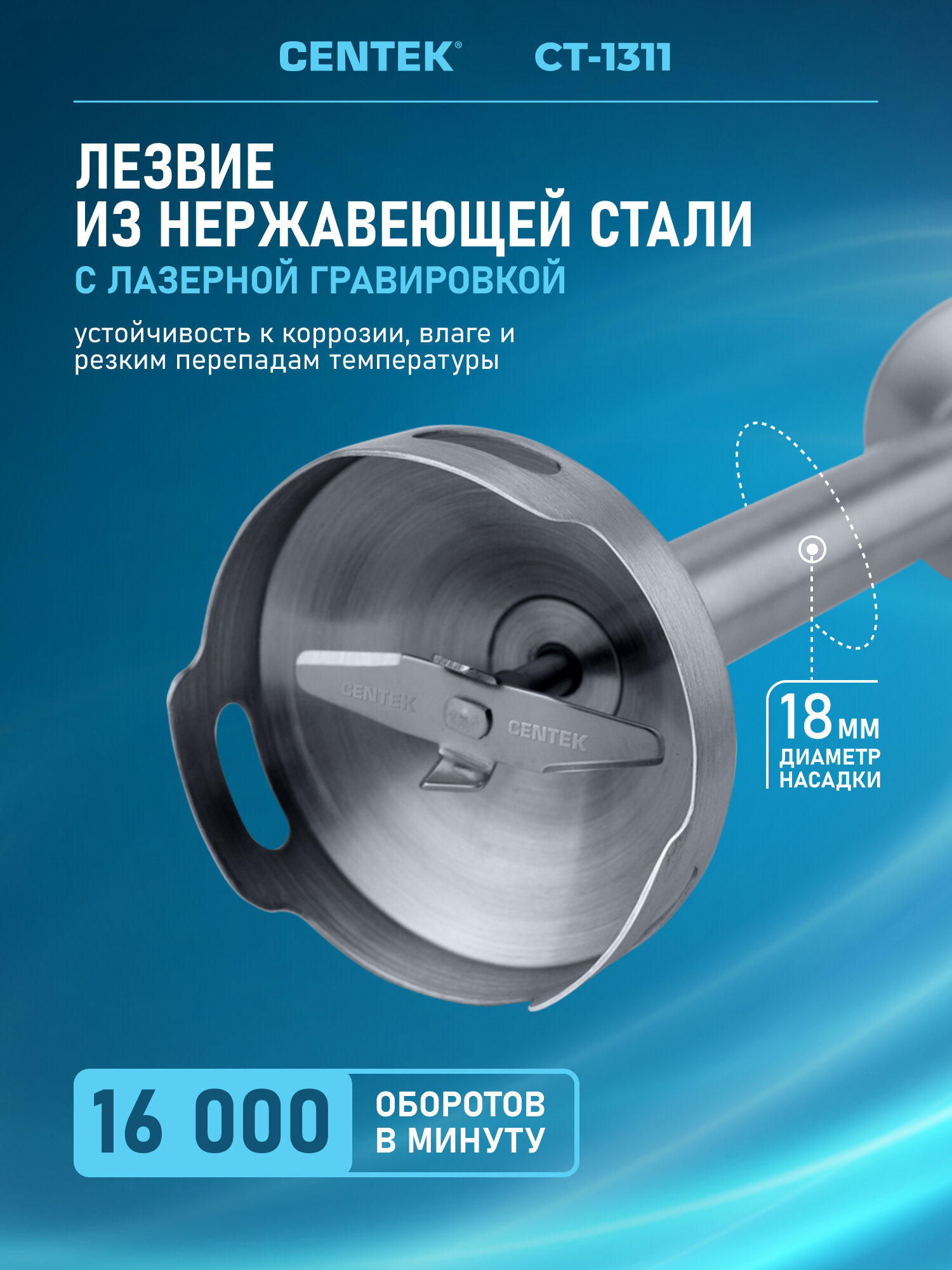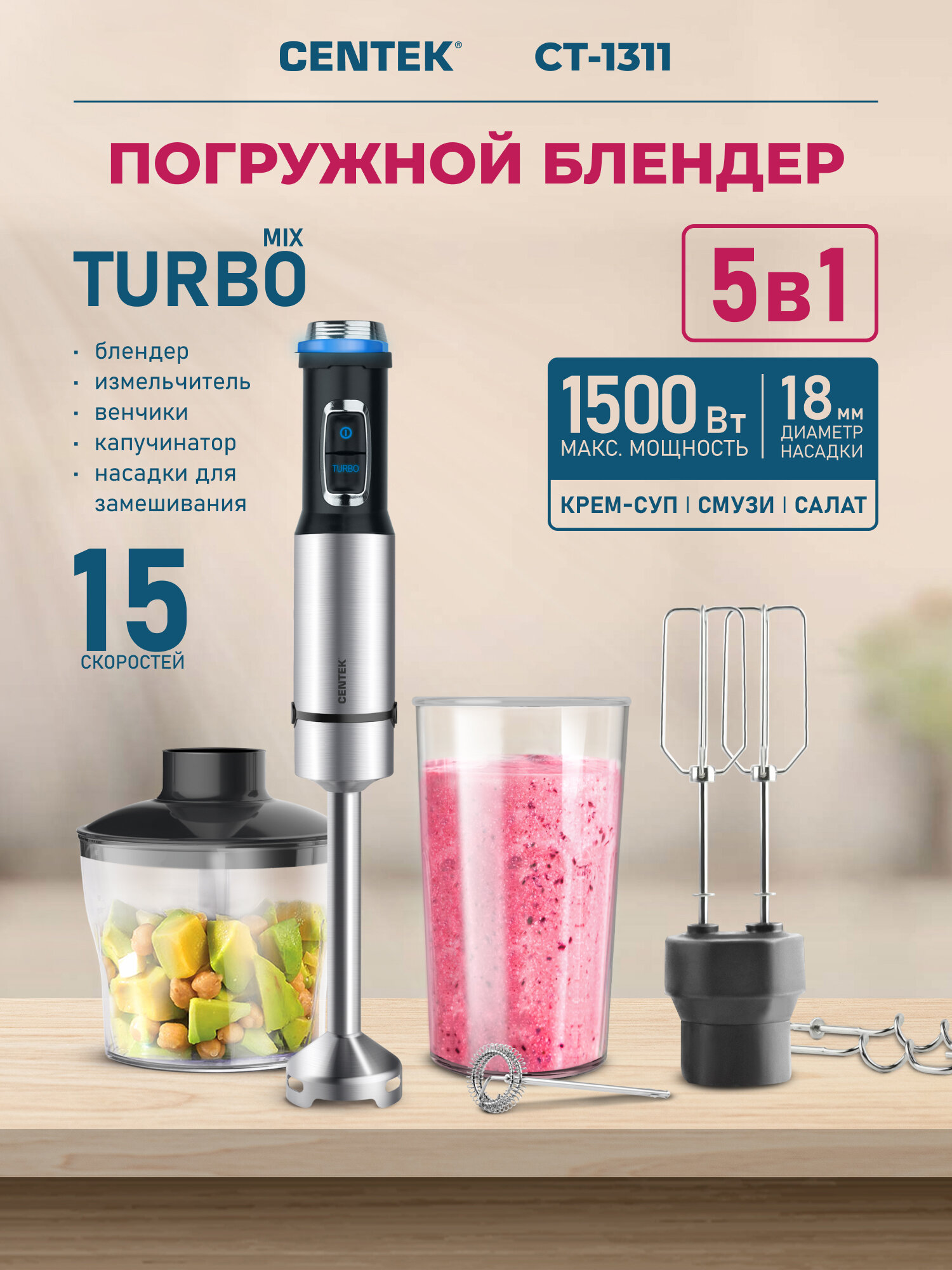 Блендер погружной CENTEK CT-1311/ черный/сталь/ 1500 Вт/ 15 скоростей/ чоппер/ венчик/ крюк/ капучинатор: сравнение цен, характеристики, фото, актуальное наличие и цены.