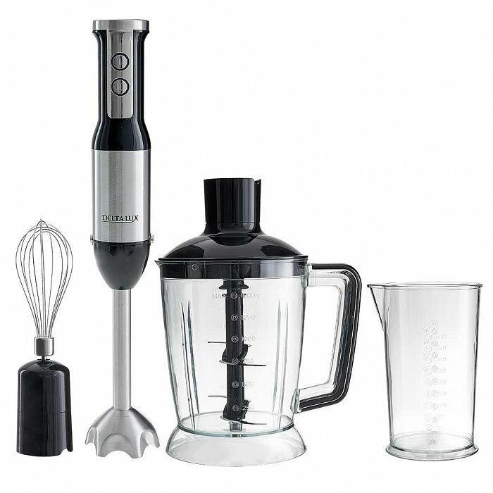 Блендер погружной Delta Lux DE-7003B с измельчителем, венчиком, стаканом, черный, 1000 Вт: сравнение цен, характеристики, фото, актуальное наличие и цены.