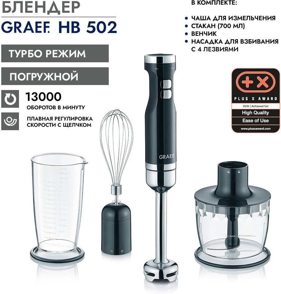 Купить Блендер погружной GRAEF HB 502 schwarz с доставкой по всей России. Блендер погружной GRAEF HB 502 schwarz: сравнение цен, характеристики, фото, актуальное наличие и цены.