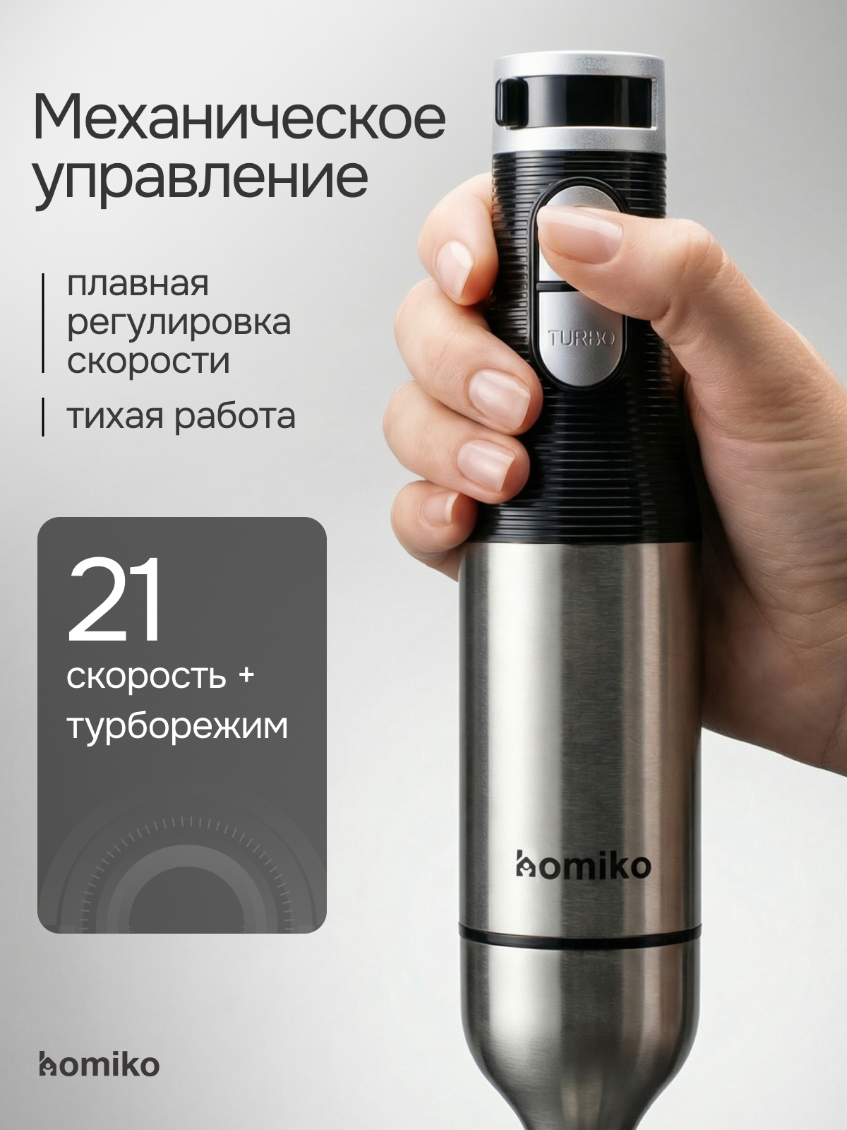 Мощный погружной блендер-комбайн — многофункциональное устройство для быстрого и удобного приготовления блюд дома. Подходит для ежедневного использования и заменяет сразу несколько кухонных приборов.
