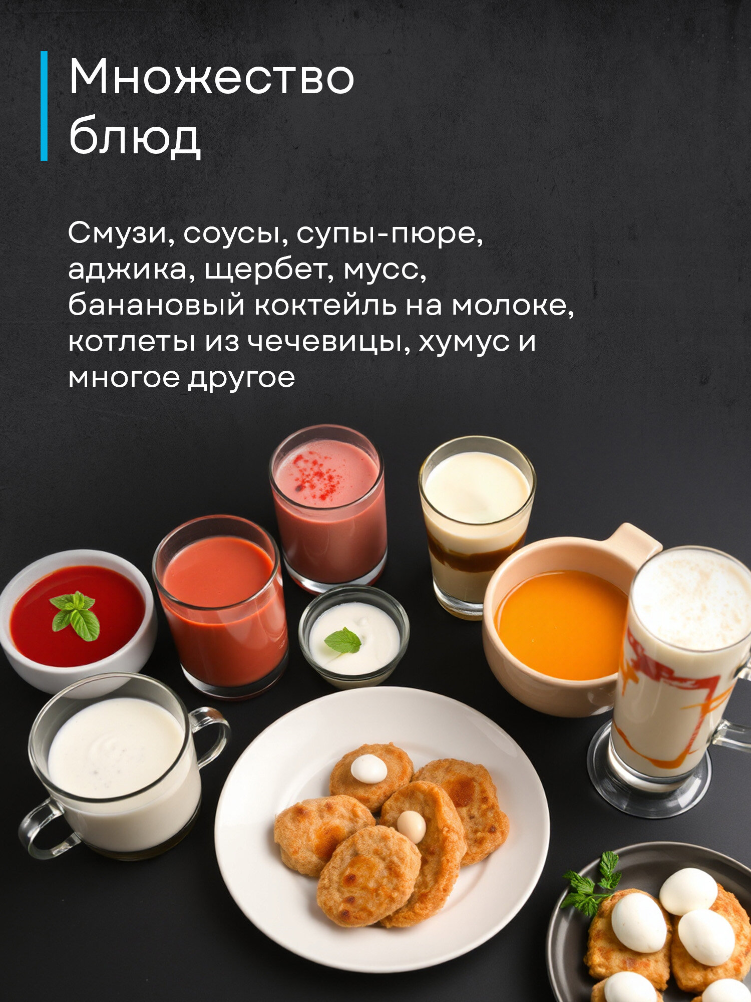 | Насадки | венчик для взбивания, для приготовления пюре, измельчитель |