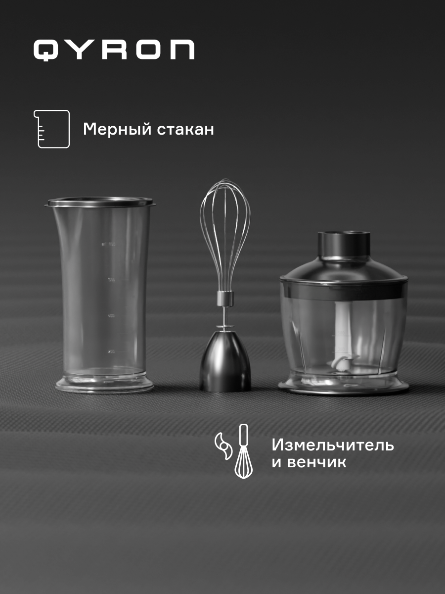 Купить Блендер погружной QYRON BH601, турбо-режим, нержавеющая сталь, венчик и измельчитель с доставкой по всей России. Блендер погружной QYRON BH601, турбо-режим, нержавеющая сталь, венчик и измельчитель: сравнение цен, характеристики, фото, актуальное наличие и цены.
