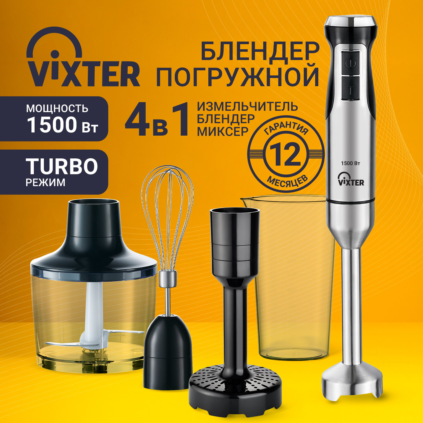 Купить Блендер погружной VIXTER 4 в 1 мощный с измельчителем для смузи и пюре 1500 Вт ручной с насадкой и чашей тихий HBW-2285 с доставкой по всей России.