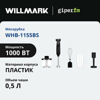 Блендер погружной WILLMARK WHB-1155BS, мощность 1000 Вт, 4 режима работы, 9 скоростей, с измельчителем, венчиком и насадкой для пюре в комплекте, черный