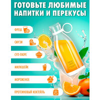 Портативный блендер для смузи FRESH JUICE – идеальное устройство для любителей свежеприготовленных смузи и коктейлей. Беспроводной измельчитель позволит с легкостью приготовить любимый напиток в любое время и место: на работе, в спортзале или во время прогулки. Простое использование бутылочки-блендера обеспечит комфорт и удобство в Вашей повседневной жизни. Разнообразьте рацион питания для себя и всей семьи: мощный мини блендер способен удовлетворить предпочтения каждого – идеально подходит для приготовления смузи, пюре, соусов, протеинового коктейля и других фитнес-напитков, детского питания и муссов всего за 30 секунд. Мощный блендер может перемалывать сухие крупы и дробить лед, измельчать и смешивать не хуже стационарных погружных устройств, так как создает 20000 вращений в минуту и позволяет сделать 14-16 напитков на одном заряде, а с удобной магнитной зарядкой с USB-кабелем его можно подзарядить в любом доступном месте. Беспроводной блендер можно заряжать в автомобиле, от портативного источника питания. Ручной измельчитель продуктов оснащен резиновой ручкой, поэтому его удобно брать с собой на тренировки, в школу, в дорогу, в поход, на пикник, на пляж, в машину, а также на прогулку. Если у вас маленький ребенок, наш ручной блендер можно брать с собой для приготовления пюре, измельчения продуктов, если у вас нет доступа к источнику питания. Благодаря магнитной зарядке и разборной конструкции ручного блендера его легко и безопасно мыть после использования. Блендер можно использовать как стильную шейкер-бутылку для ваших напитков – она легко помещается с сумку, для охлаждения можно поместить в холодильник. Важно! При включении блендера: 1) Индикатор не должен мигать, если он мигает значит аккумулятор разрядился и его нужно зарядить до 100% 2) Необходимо крепко прикрутить моторное дно к бутылке. 3) Необходимо нажать 2 раза на кнопку. Переносной блендер станет отличным подарком для близких на день влюбленных, 23 февраля, день рождения и 8 марта. Порадуйте маму, сестру, мужа и подругу в праздничный день. Комплектация: 1. Кувшин с крышкой 2. Моторный блок со слайсером из нержавеющей стали 3. Магнитное зарядное устройство 4. Фирменная упаковка 5. Инструкция на русском языке