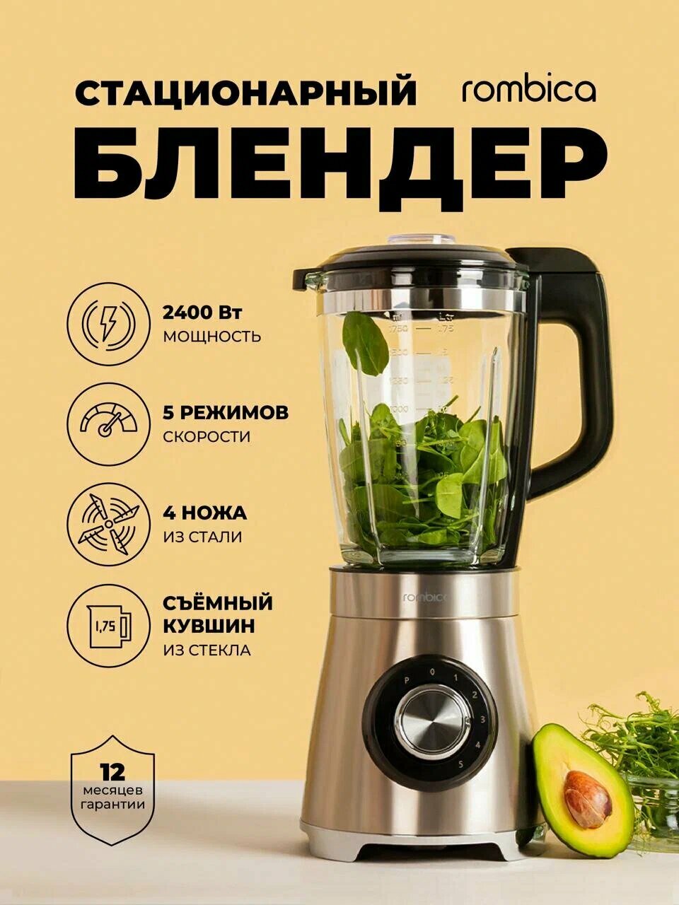 Купить Блендер стационарный Rombica myKitchen BS-1010, стеклянная чаша 1.75 литра, импульсный режим, 1300 Вт, 5 скоростей с доставкой по всей России.