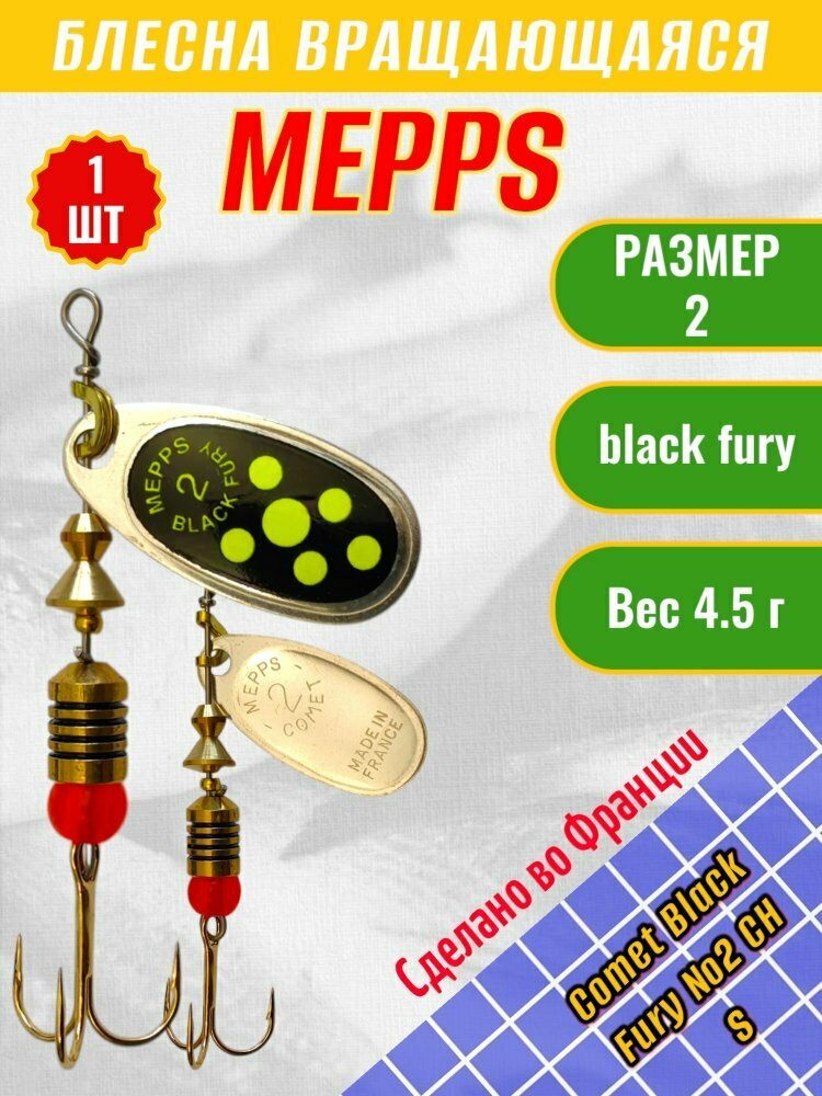 Купить Блесна вращающаяся MEPPS Comet Black Fury №2 Chart S с доставкой по всей России.