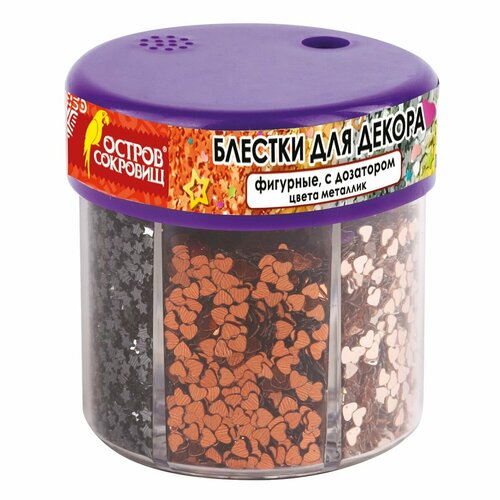Блестки декоративные Остров сокровищ, 6 цветов металлик, фигурные, диспенсер с дозатором (191373), 36 уп.: сравнение цен, характеристики, фото, актуальное наличие и цены.