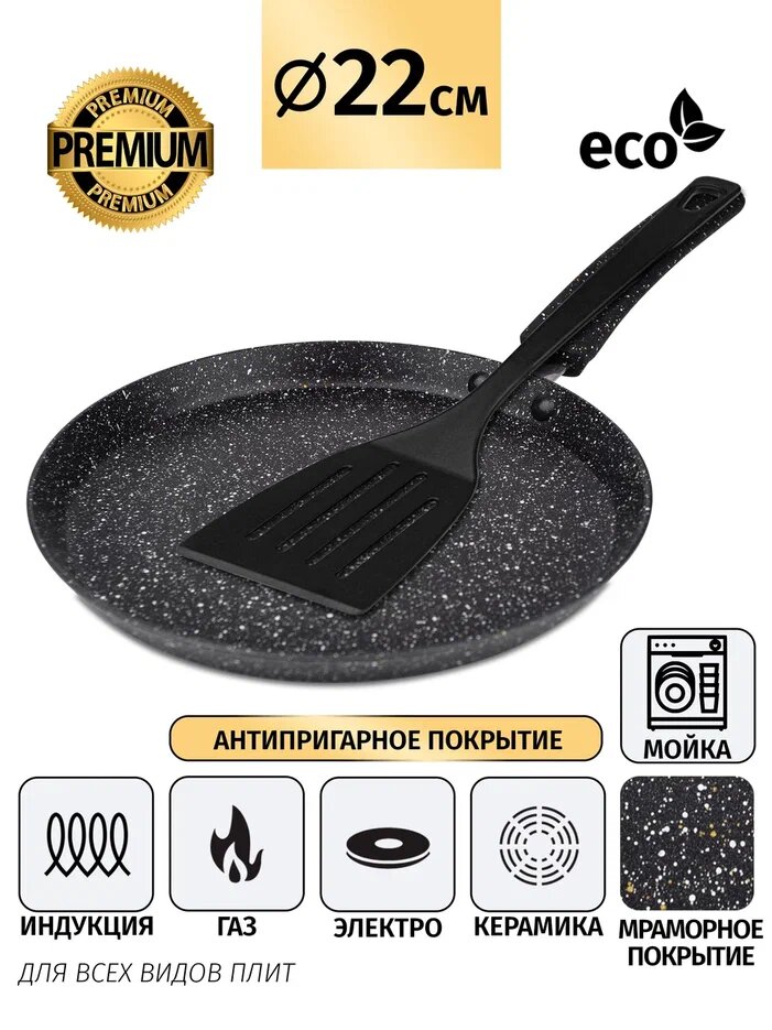 Купить Блинная сковорода с лопаткой 22см с доставкой по всей России. Блинная сковорода с лопаткой 22см: сравнение цен, характеристики, фото, актуальное наличие и цены.