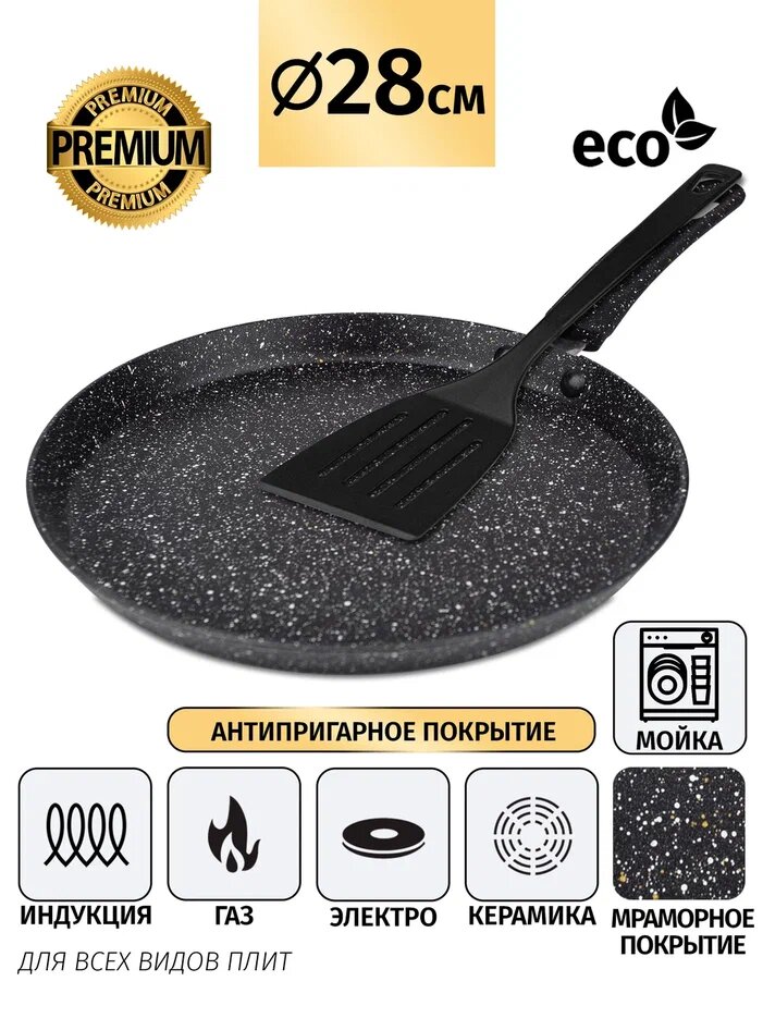 Купить Блинная сковорода с лопаткой 28см с доставкой по всей России. Блинная сковорода с лопаткой 28см: сравнение цен, характеристики, фото, актуальное наличие и цены.