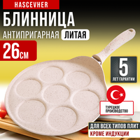 Купить Сковорода для блинов — оладий 26 см алюминиевая мраморное покрытие с бакелитовой ручкой Hascevher с доставкой по всей России.