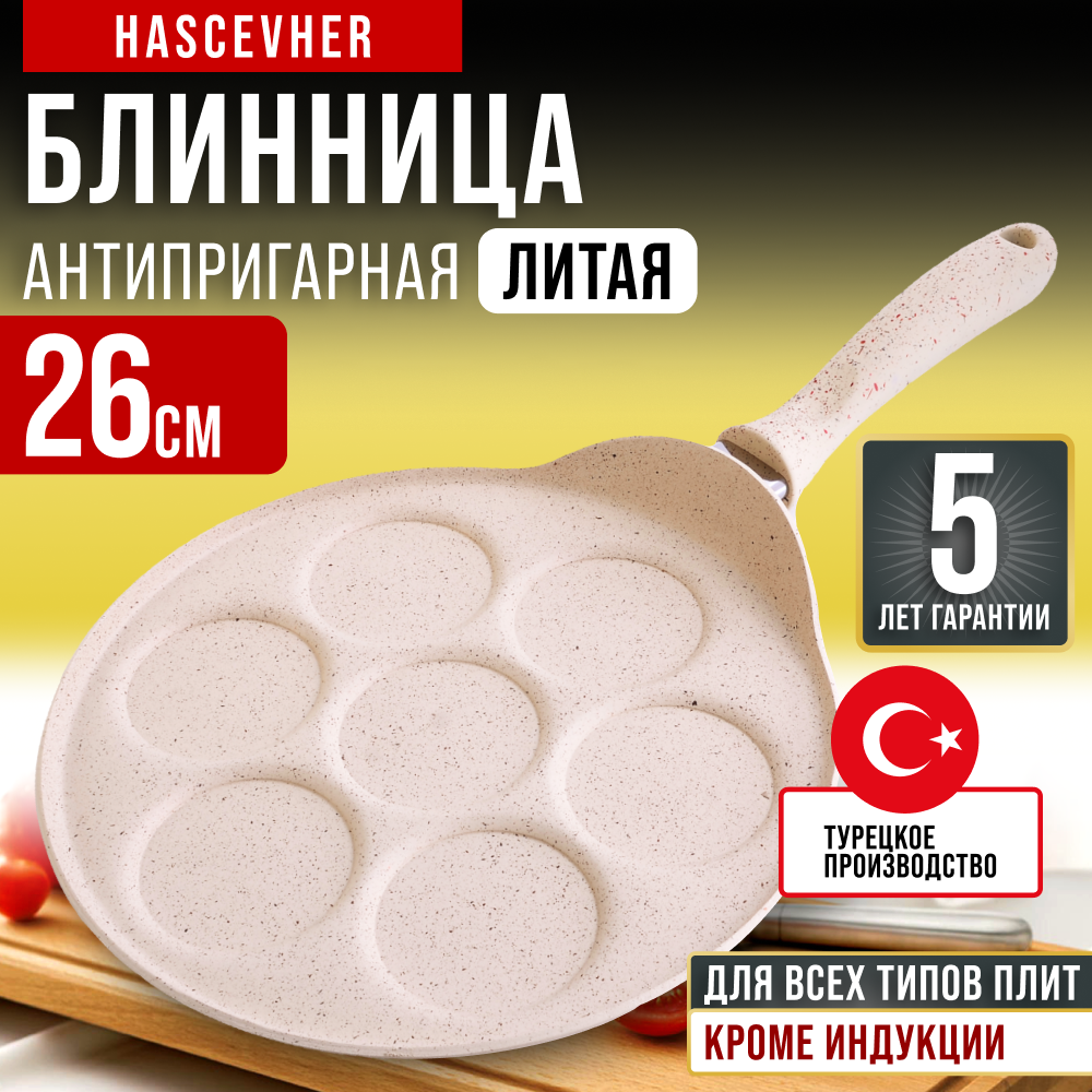 Сковорода для блинов — оладий 26 см алюминиевая мраморное покрытие с бакелитовой ручкой Hascevher: сравнение цен, характеристики, фото, актуальное наличие и цены.