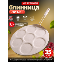 Купить Сковорода для блинов -оладий 35 см алюминиевая, мраморное покрытие с бакелитовой ручкой Hascevher с доставкой по всей России.