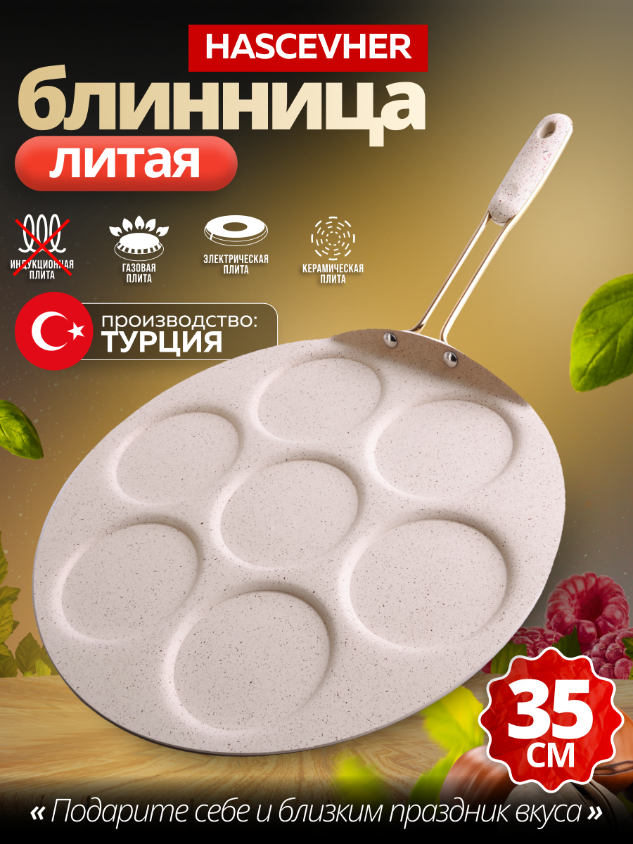 Сковорода для блинов -оладий 35 см алюминиевая, мраморное покрытие с бакелитовой ручкой Hascevher: сравнение цен, характеристики, фото, актуальное наличие и цены.