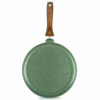 Сковорода выполнена в натуральном зеленом цвете и комплектуется эргономичной ручкой с имитацией дерева.