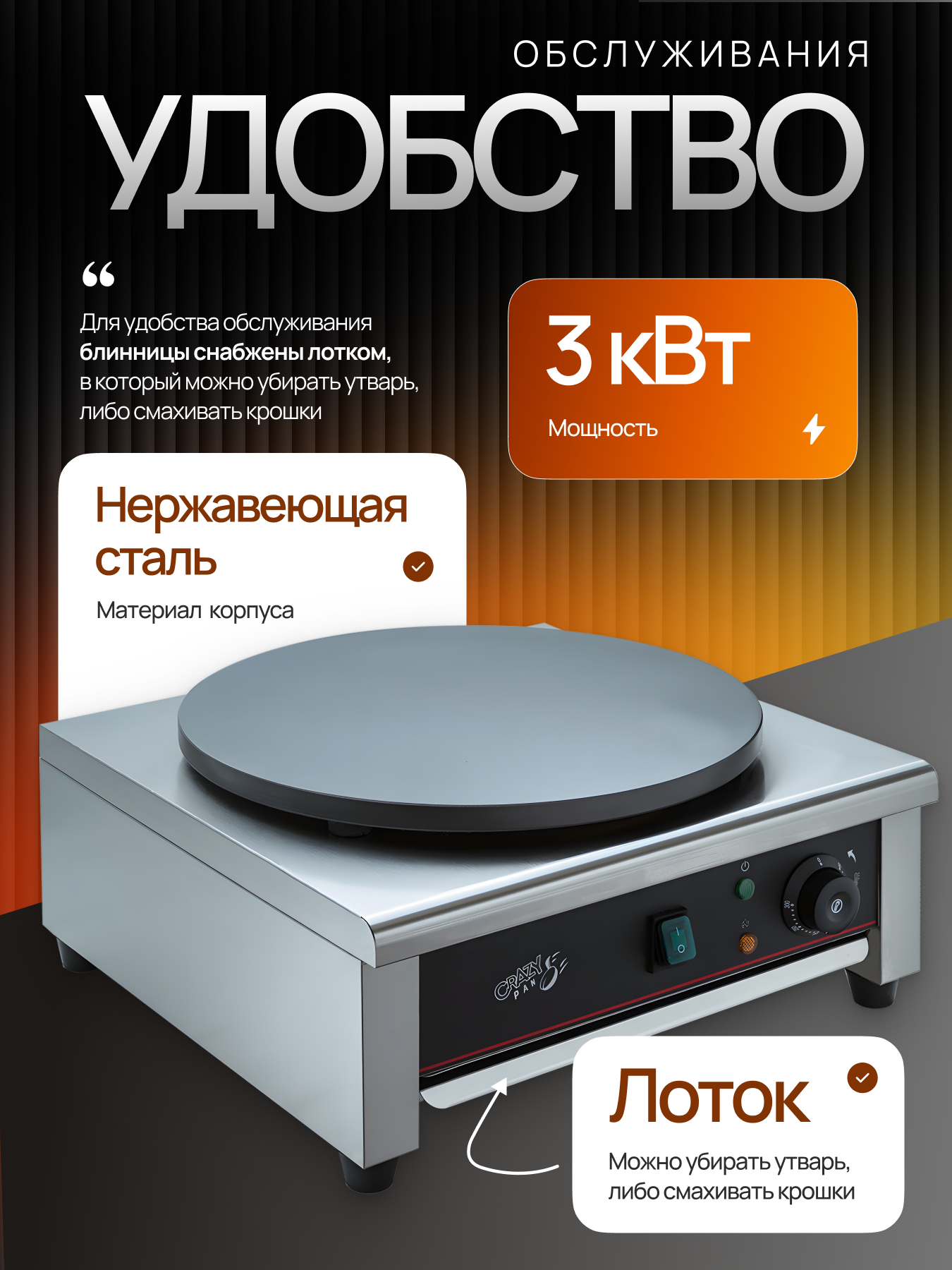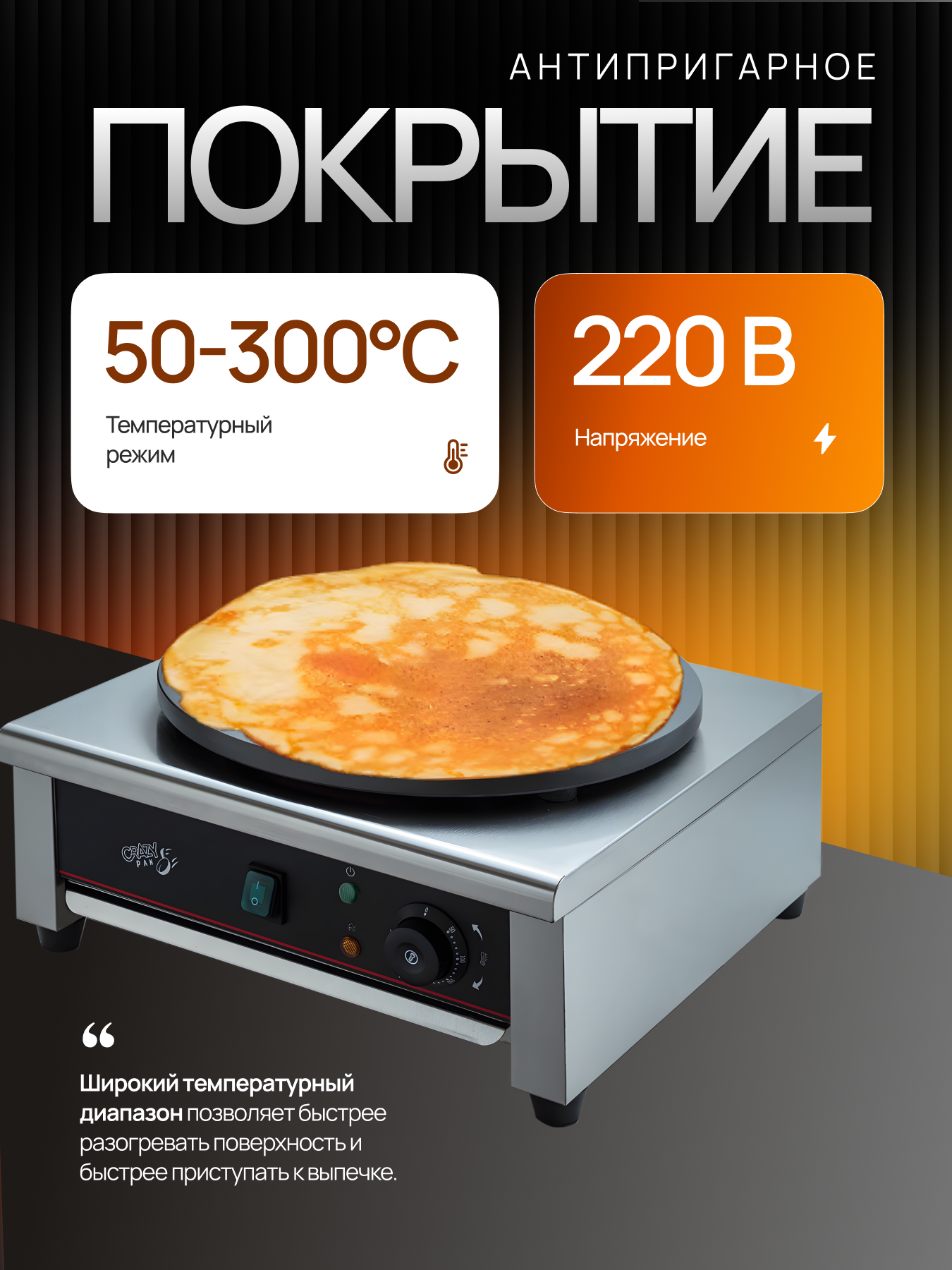 Купить Блинница Crazy Pan CP-CM400 серебристый, 3кВт, 220В, чугун, D=400мм с доставкой по всей России. Блинница Crazy Pan CP-CM400 серебристый, 3кВт, 220В, чугун, D=400мм: сравнение цен, характеристики, фото, актуальное наличие и цены.