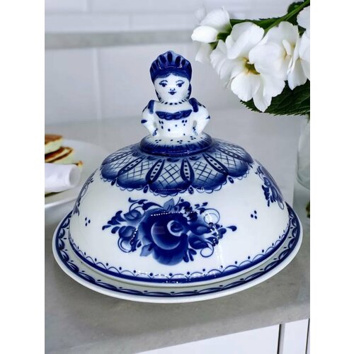 На Руси блин символизировал солнце благодаря форме и цвету. Блины – это чудесное блюдо, которое подходит и для семейного завтрака, и для праздничного застолья. А если подать эту традиционную выпечку необычным способом, используя блинницу , то можно удивить гостей и создать за столом особенную атмосферу. Фарфоровая емкость для блинов диаметром 17 см с крышкой, которая поможет сохранить тепло и аромат блинов. Блинница расписана вручную в соответствии с классическими канонами гжельских традиций, она станет не только украшением стола на Масленицу, но и прекрасным дополнением к вашей коллекции посуды, а также отличным подарком для любителей изысканного стиля и настоящего ручного труда.
