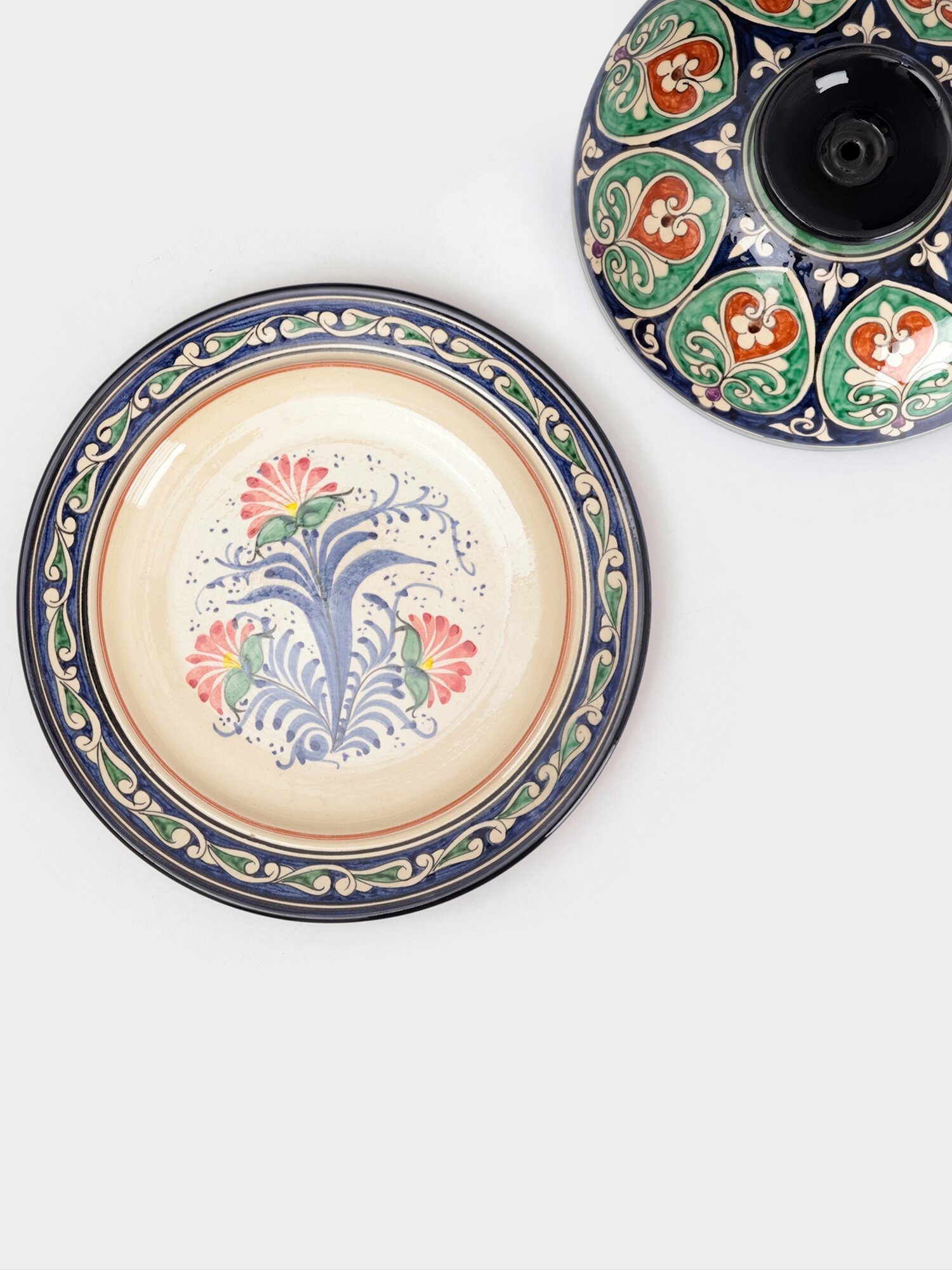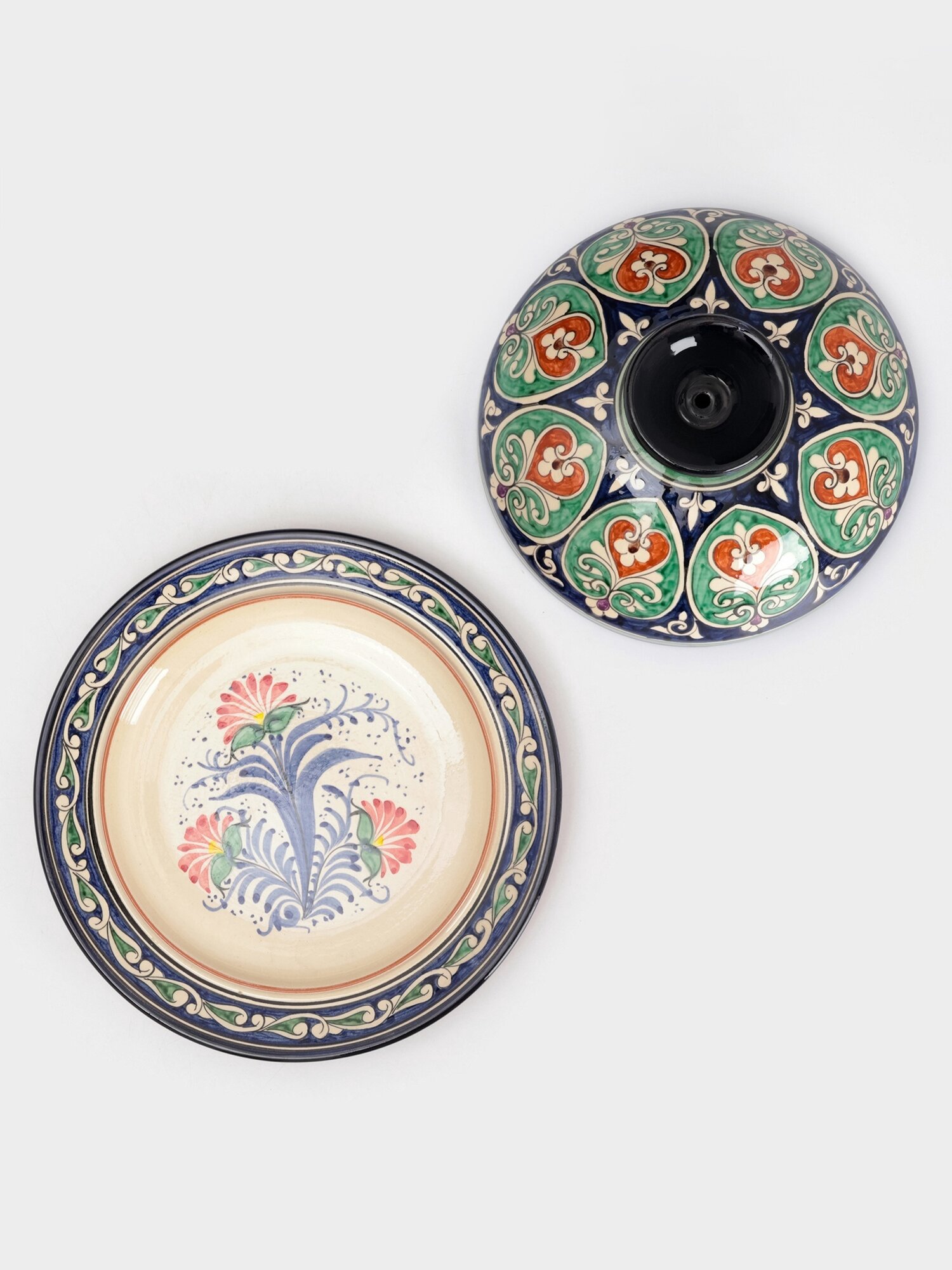 Диаметр, см : 26 Набор : Нет Цвет : Разноцветный Форма : Круглая Диаметр крышки, см : 22 Тематика : Узоры Рисунок : Да Материал : Керамика Вид тарелки : Плоская Можно мыть в посудомоечной машине : Нет Можно использовать в СВЧ-печи : Да Текстура : Гладкая Особенности : Без особенностей Состав : Керамика Примечание : Ручная работа, рисунок может отличаться от фото