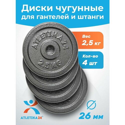Блины для гантели и штанги 10 кг Atletika24 набор 4 шт. по 2,5 кг; чугунные диски для штанги/гантелей 26 мм: сравнение цен, характеристики, фото, актуальное наличие и цены.