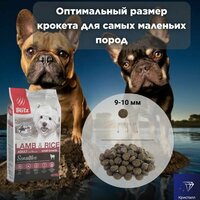 - Сухой корм "Блиц" для мелких пород собак с ягнёнком и рисом имеет маленькие гранулы, что очень удобно для миниатюрных питомцев.