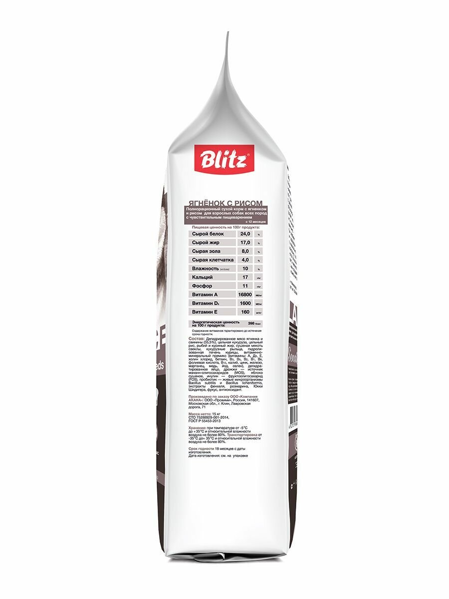 Купить Сухой корм для взрослых собак Blitz 15кг Sensitive Lamb&Rice Ягненок и рис с доставкой по всей России.