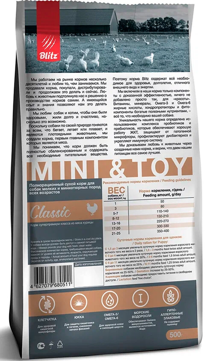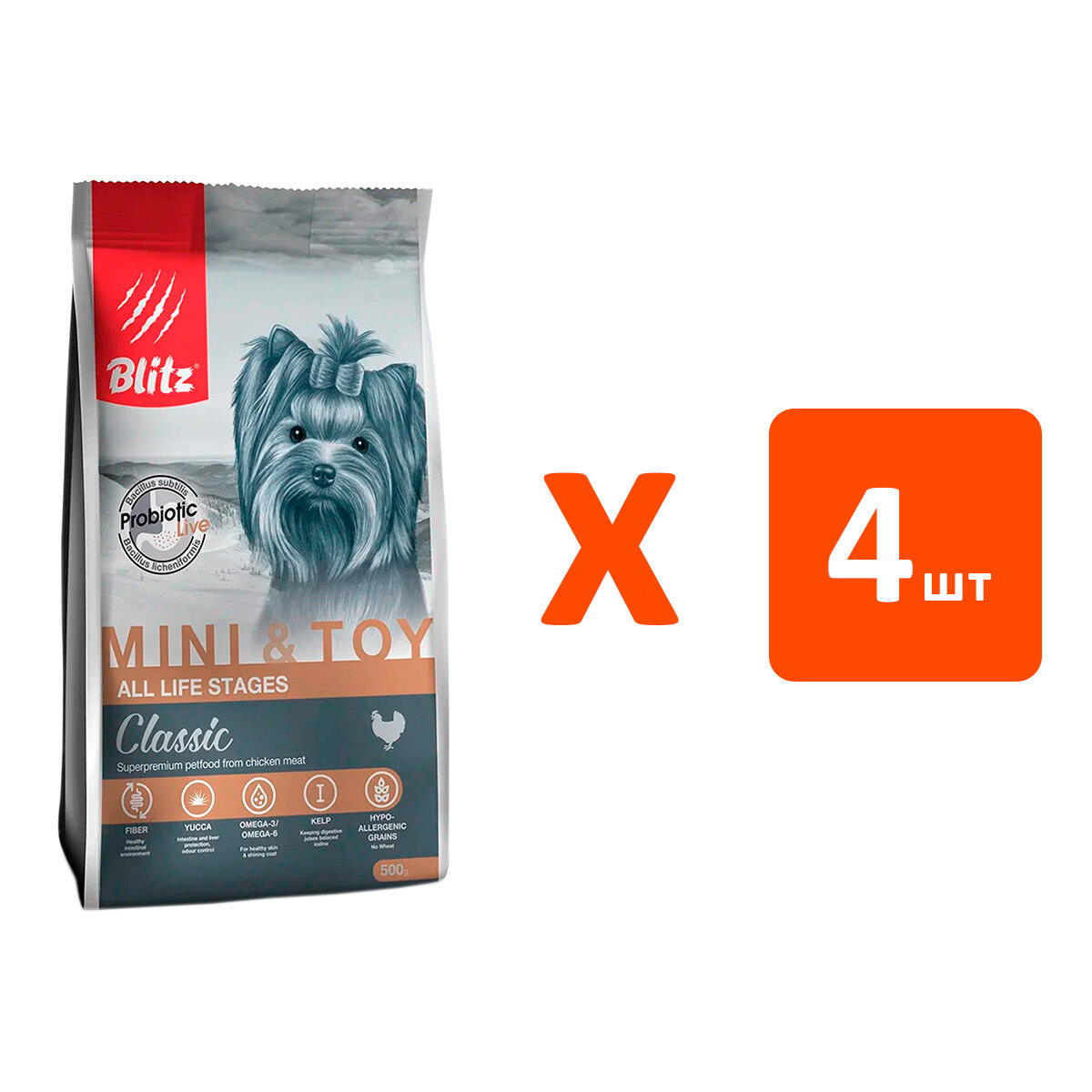 Купить BLITZ CLASSIC ADULT MINI & TOY BREEDS CHICKEN для взрослых собак маленьких пород 0,5 кг х 4 шт с доставкой по всей России.