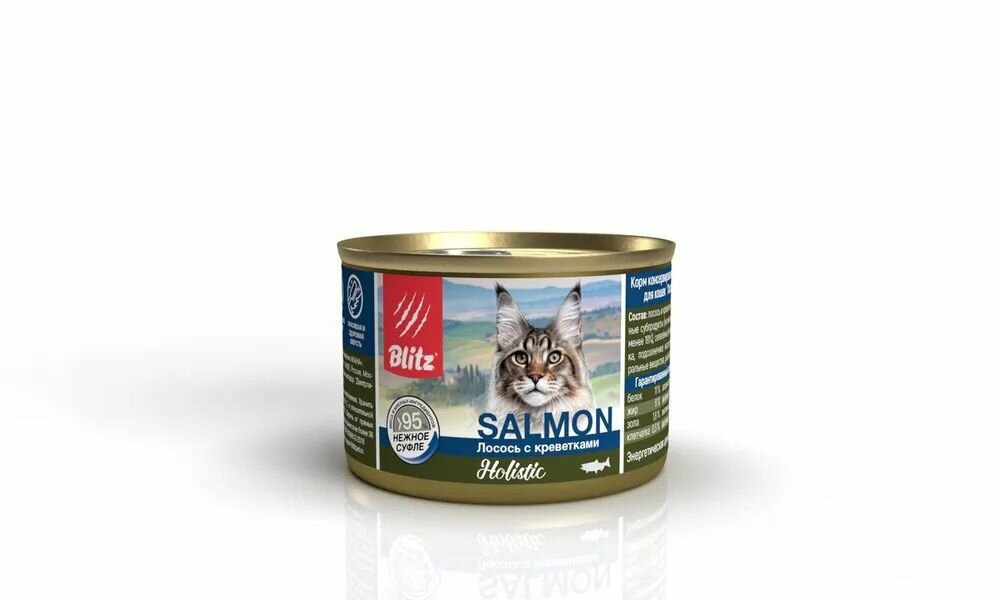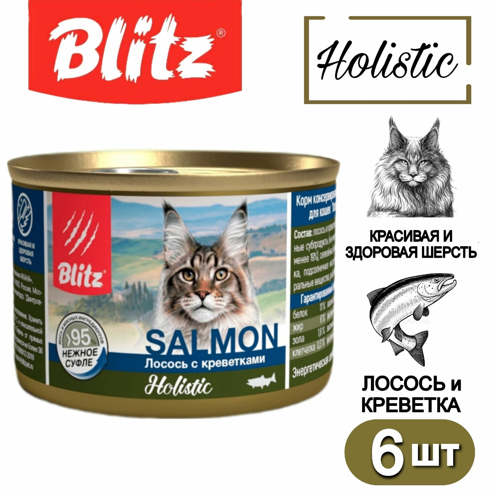 Купить Blitz Holistic влажный корм для кошек консервы лосось с креветкой суфле 200 г х 6 шт с доставкой по всей России. Blitz Holistic влажный корм для кошек консервы лосось с креветкой суфле 200 г х 6 шт: сравнение цен, характеристики, фото, актуальное наличие и цены.