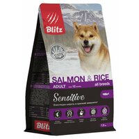 Сухой корм Blitz Salmon & Rice создан для взрослых собак всех пород — он подойдёт и лабрадорам, и шпицам, и корги, и суровым защитникам, и весёлым компаньонам. Формула разработана для животных с чувствительным пищеварением и объединяет сразу несколько преимуществ: потрясающий вкус, сбалансированный состав, хорошую усвояемость компонентов и бережное воздействие корма на желудочно-кишечную, иммунную и другие системы организма.