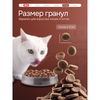 Формула корма обогащена живыми бактериями Bacillus и пребиотиками (инулин, MOS, FOS), которые поддерживают здоровую микрофлору кишечника и улучшают пищеварение. Куриный и рыбий жир обеспечивают организм кошки незаменимыми жирными кислотами Омега-3 и Омега-6, способствуя здоровью кожи и блеску шерсти. Сбалансированный минеральный состав способствует профилактике заболеваний мочевыделительной системы.