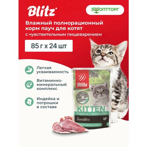 Купить Blitz Sensitive Kitten пауч для котят (кусочки в соусе) Индейка и потрошки, 85 г. упаковка 24 шт с доставкой по всей России. Blitz Sensitive Kitten пауч для котят (кусочки в соусе) Индейка и потрошки, 85 г. упаковка 24 шт: сравнение цен, характеристики, фото, актуальное наличие и цены.