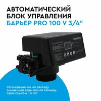 Блок управления BARRIER PRO100V3/4. Присоединительный размер 3/4”. Преимущества: - Подходит к стандартным корпусам от 6 до 12” (PRO100V3/4) - Удобство эксплуатации с фильтрующей засыпкой ECOMIX - Простая и надежная конструкция - Долговечные керамические диски - Адаптация для российского рынка - Удобство в тех. обслуживании - Европейские присоединительные размеры резьб - Энергонезависимая память - Минимальное энергопотребление Гибкое программирование: - Возможность выбора режима работы фильтра: фильтрация или умягчение. - В каждом регенерационном режиме есть возможность настройки времени его проведения, вплоть до полного исключения стадии из цикла регенерации. - Возможность точной настройки режима «отложенная регенерация» как по времени ее проведения, так и по «остаточной емкости» в процентах Характеристики: - Регенерация: по объему очищенной воды - Присоединительный размер: 3/4” - Производительность: до 3 м. куб./ч