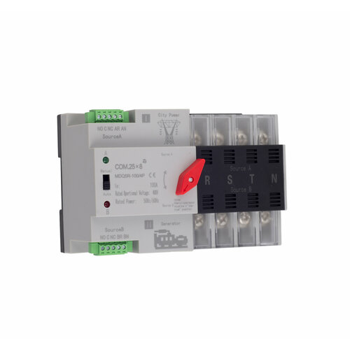 Блок автоматического включения резерва - блок АВР(реверсивный рубильник с электроприводом), имея малые размеры ВхШхГ (96х142,5х78,5) и возможность монтажа на Din-рейку с легкостью устанавливается в вводной щит, либо в щит, установленный на трубостойку радом с Вашим земельным участком. Для уменьшения финансовых затрат на провода и кабели, рекомендуемое место установки блока АВР - максимально близко к счетчику электроэнергии. Для этой модели блока АВР не нужно монтировать отдельный щит, как для других аналогов такого типа. Имея мощные силовые контакты, блок АВР с легкостью пропускает токи до 100А. Силовые контакты являются электронезависимыми от приводного механизма, следовательно к ним можно подключать любую нагрузку - трехфазную с нулем, трехфазную без нуля, однофазную. Есть возможность увеличения однофазной нагрузки за счет запараллеливания силовых контактов. Работа блока АВР предусмотрена в двух режимах - Автоматический и Ручной. В Ручном режиме можно: вручную включить Режим питания от основной сети или Режим питания от генератора. При изменении наличия (отсутствия) напряжения на основной или резервной линии, положение контактов блока АВР в ручном режиме не изменится. В автоматическом режиме блок АВР самостоятельно включится на ту линию, на которой присутствует напряжение. Если напряжение присутствует на основной и резервной линиях одновременно, у блока имеется функция приоритета, т. е. он самостоятельно выберет положение питания по основной линии. При коммутации трехфазной сети управление блоком АВР рекомендуется осуществлять с помощью реле состояния электросети (контроллер, реле контроля напряжения), либо контроллером генератора (контролируются такие параметры, как отклонение напряжения сети, обрыв одной, либо всех фаз сети, обрыв нуля, правильность чередования фаз, время задержки переключения). При использовании блока АВР в однофазных сетях такие реле не требуются. Наличие дополнительных но и НЗ блок контактов со стороны основного и резервного электропитания позволяет использовать светосигнальную и звуковую сигнализацию для контроля наличия/отсутствия электропитания, а также управлением пуск - останов вашей генераторной установки в автоматическом режиме. При и использовании блока АВР, при включении генераторной установки, подача "обратного" напряжения в городскую электросеть гарантированно исключена. блок АВР может использоваться с любыми альтернативными источниками питания - бензо, дизель, газогенераторные установки, солнечные батареи, ветряки, инверторы. Это оптимальное решение для организации бесперебойного электропитания вашего дома.