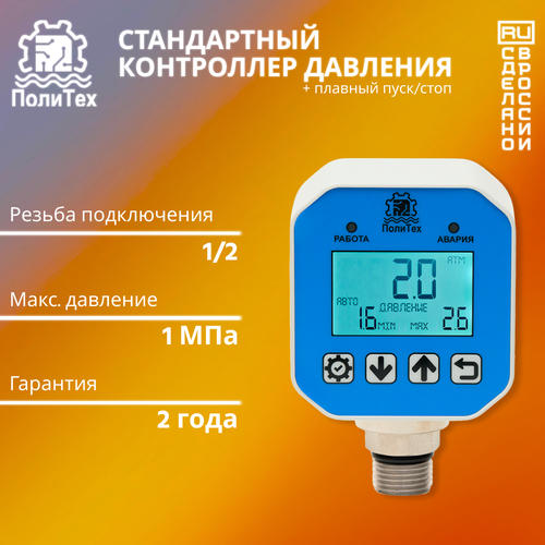 Микропроцессорный контроллер для управления работой насоса «ПолиТех» серии КД-М с плавным пуском в базовой комплектации соединяет в себе функциональные возможности сразу нескольких устройств автоматики для насоса: реле сухого хода для насоса и защиты от работы на перекрытый трубопровод, манометра и других.