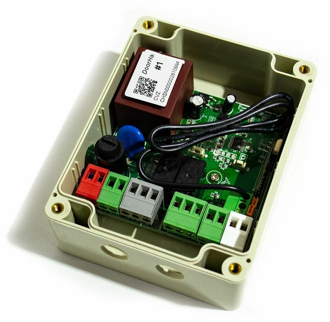 - Блок оснащен мощным и надежным трансформатором, электрические характеристики которого улучшены за счет увеличенного сечения провода обмотки и оптимизированного сердечника. - В плату встроен радиоприемник с несущей частотой 433 МГц, в память которого можно записать до 60 пультов. - Для защиты от влаги поверхность платы покрыта лаком. LED-индикаторы позволяют визуально контролировать все этапы программирования привода, а также получать информацию о выбранной логике работы. - Плата защищена от перегрузок предохранителем. - На плате предусмотрен разъем для подключения внешнего приемника, что обеспечивает возможность запрограммировать больше пультов, а также использовать пульты других производителей. - Наличие клемм на плате позволяет подключить выключатель или ключ-кнопку. - Блок управления поставляется в комплекте с герметичным корпусом (класс защиты IP65), благодаря чему он надежно защищен от воздействий окружающей среды и может быть установлен вне помещения. - Плата оснащена специальными кнопками, одна из которых используется для выбора режима управления (роллетным приводом / электрозамком / лампой освещения), вторая — для программирования пультов ДУ и очистки памяти встроенного приемника.