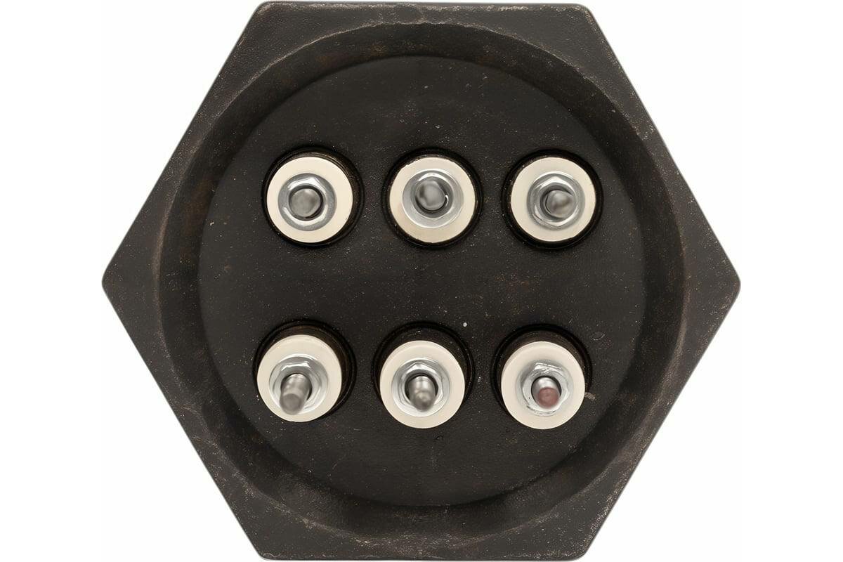 Каждый ТЭНБ-12 кВт представляет собой группу электронагревателей типа ТЭН, смонтированных во фланце с использованием прочного обжатия. Для удобной установки на объекте ТЭНБ — оснащены резьбовым фланцем диаметром G2 1/2 и шестигранным винтом под ключ для надежного крепления.