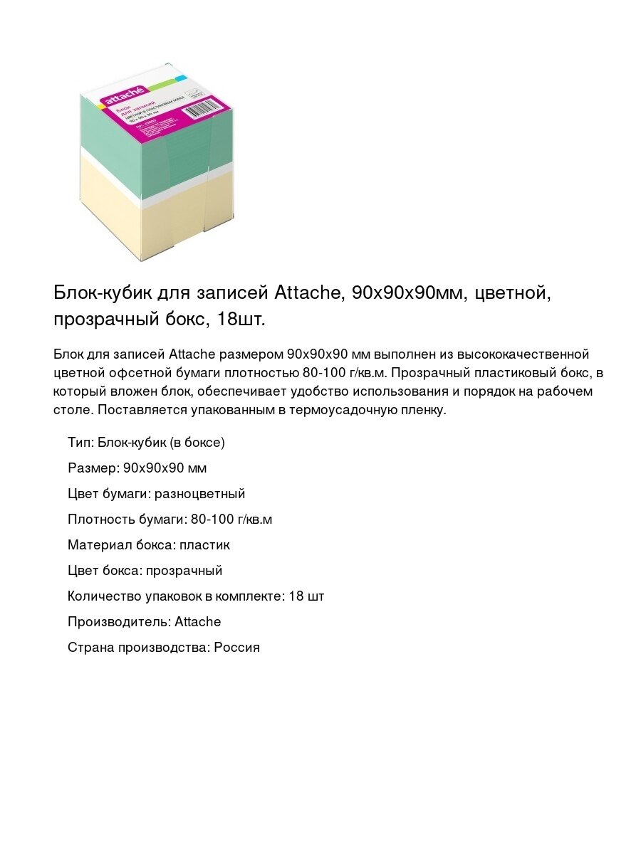 Блок-кубик для записей Attache, 90x90x90мм, цветной, прозрачный бокс, 18шт.: сравнение цен, характеристики, фото, актуальное наличие и цены.