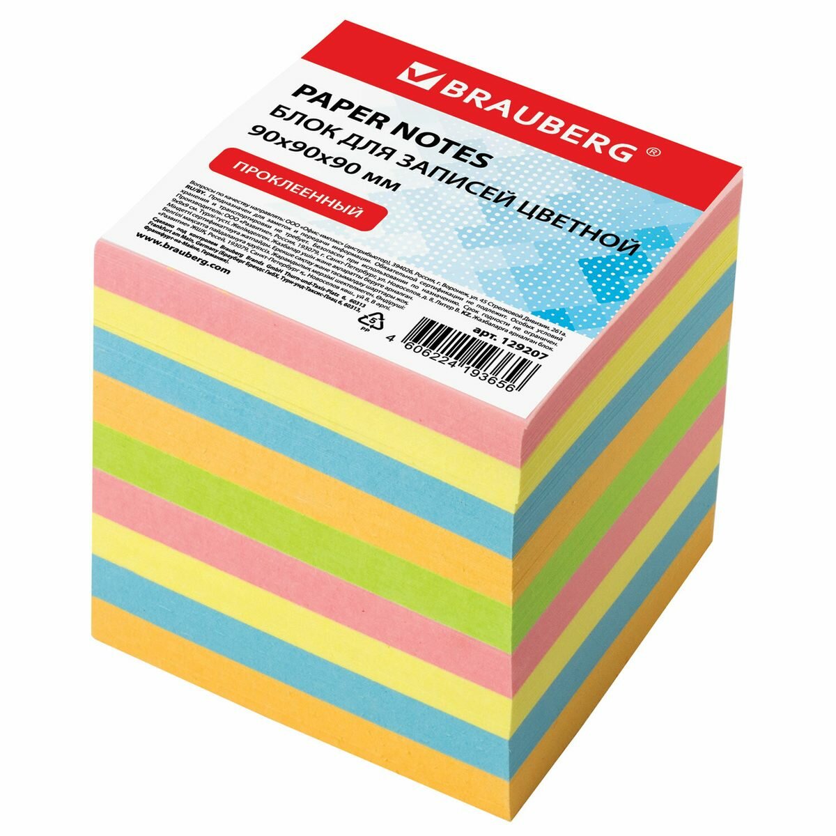 Блок-кубик для записей Brauberg, 90x90x90мм, проклеенный, цветной (129207), 12шт.: сравнение цен, характеристики, фото, актуальное наличие и цены.