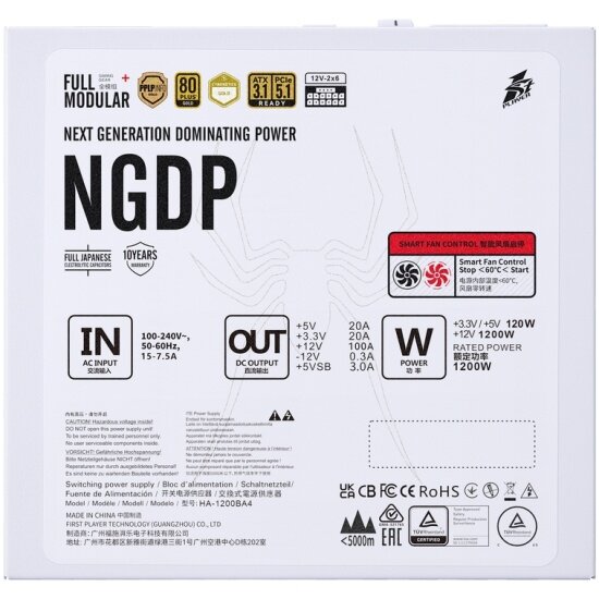 Блок питания 1STPLAYER NGDP, 1200W, 80+ Gold, ATX3.1 (HA-1200BA4-WH) белый: сравнение цен, характеристики, фото, актуальное наличие и цены.