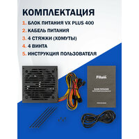 Блок питания 400Вт, ATX Filum, VX PLUS 400, вентилятор 120 мм: сравнение цен, характеристики, фото, актуальное наличие и цены.
