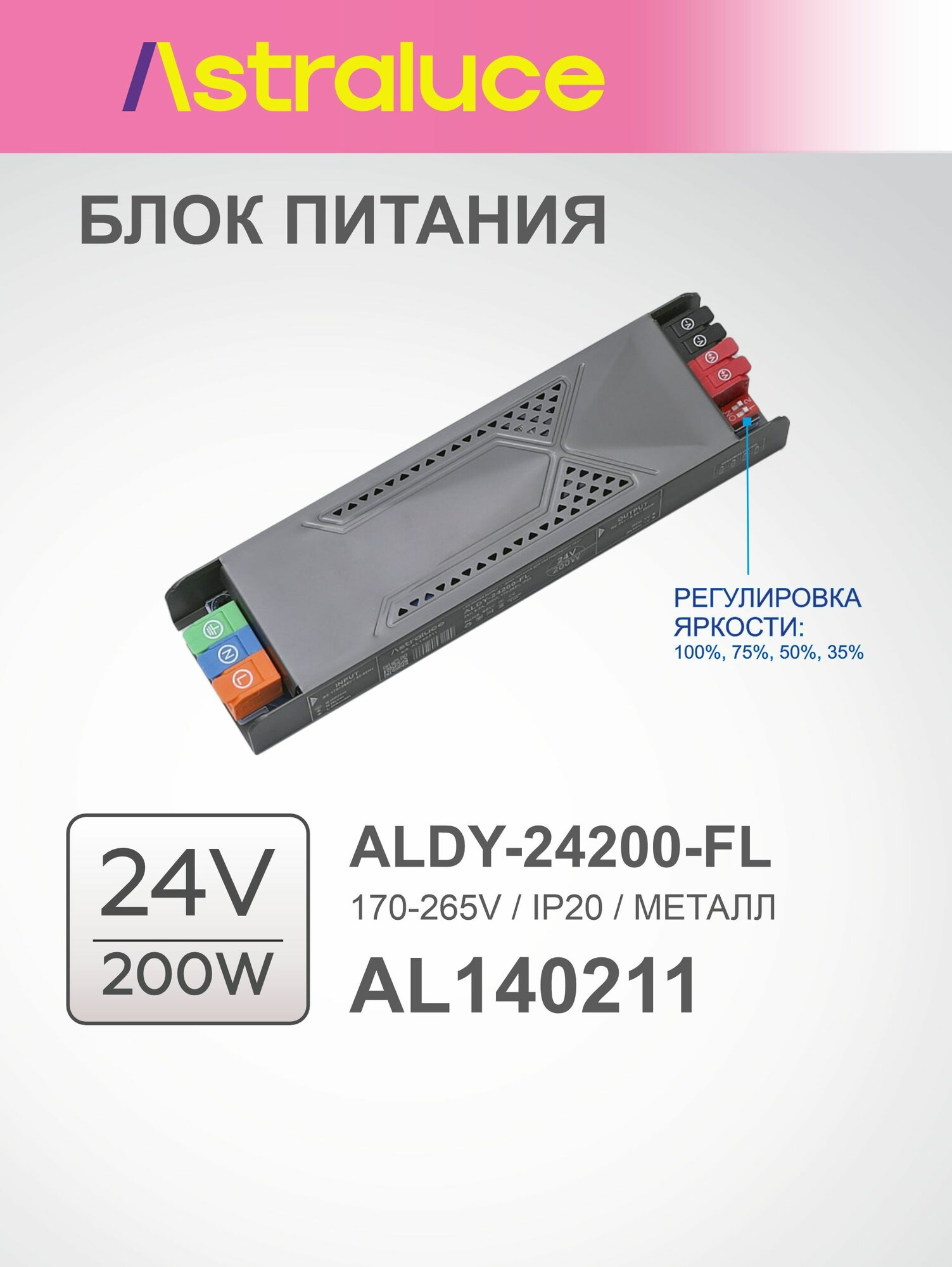 Купить Блок питания ALDY-24200-FL (24V, 8.3A, 200W, 170-265V, IP20 Металл), Astraluce AL140211 с доставкой по всей России.
