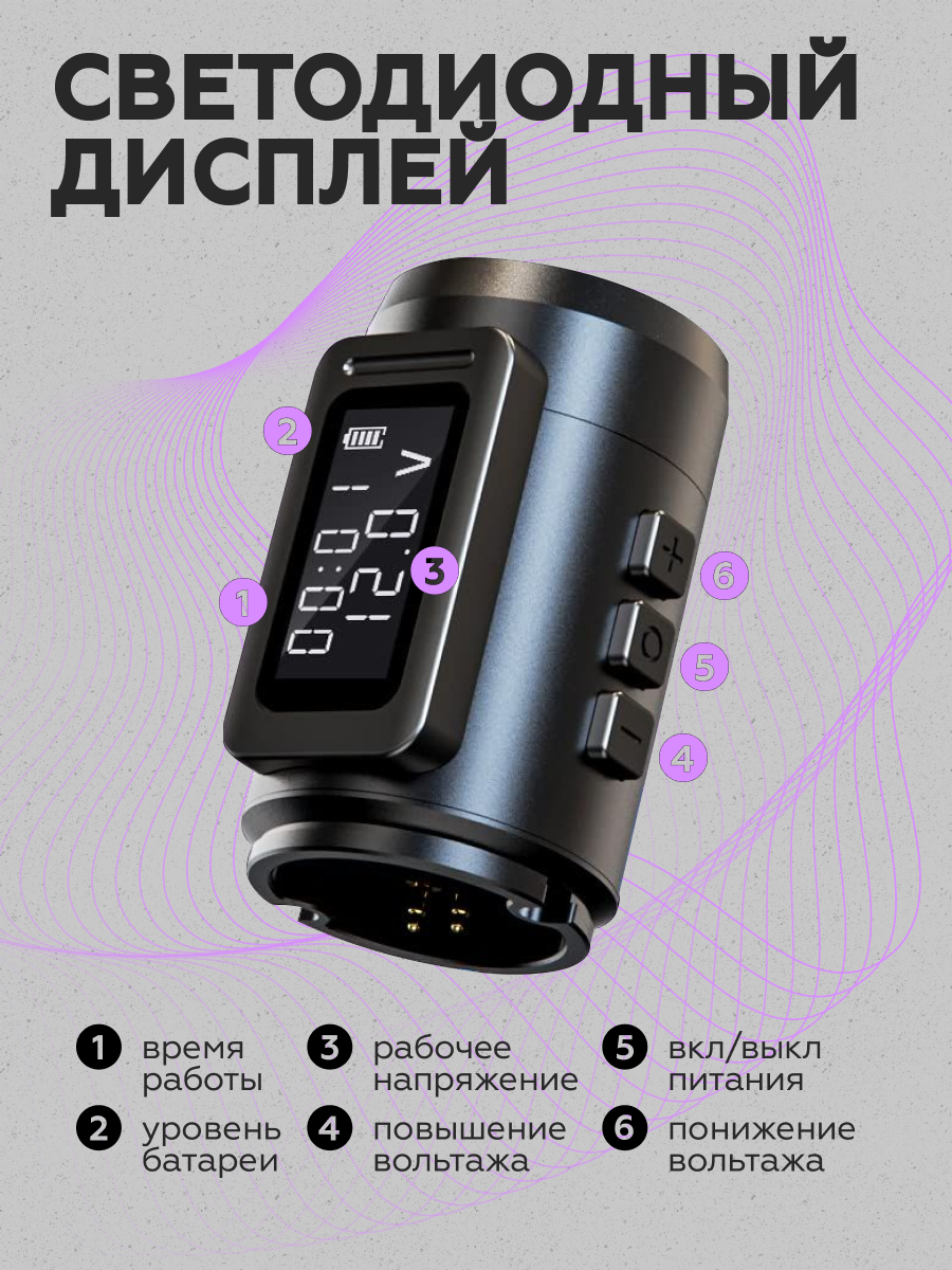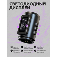 Блок питания Ambition Mars Battery совместим с тату-машинами Ambition Mars и позволяет отработать любой сеанс без перерыва.