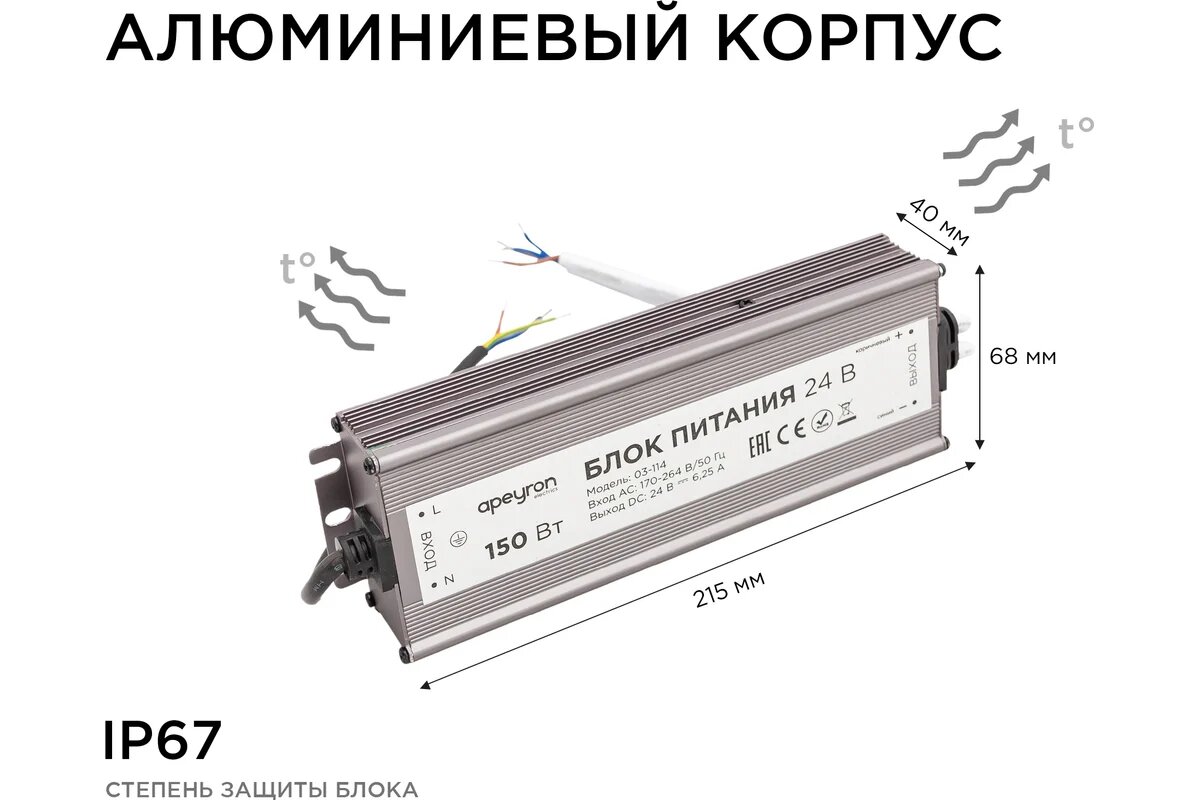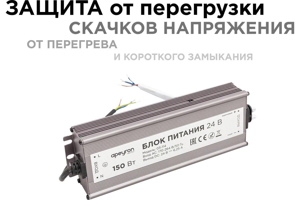 Купить Блок Питания Apeyron 24В, 150Вт, IP67, 175-265В, 6,25 А, алюм, сереб/ 03-114 с доставкой по всей России. Блок Питания Apeyron 24В, 150Вт, IP67, 175-265В, 6,25 А, алюм, сереб/ 03-114: сравнение цен, характеристики, фото, актуальное наличие и цены.