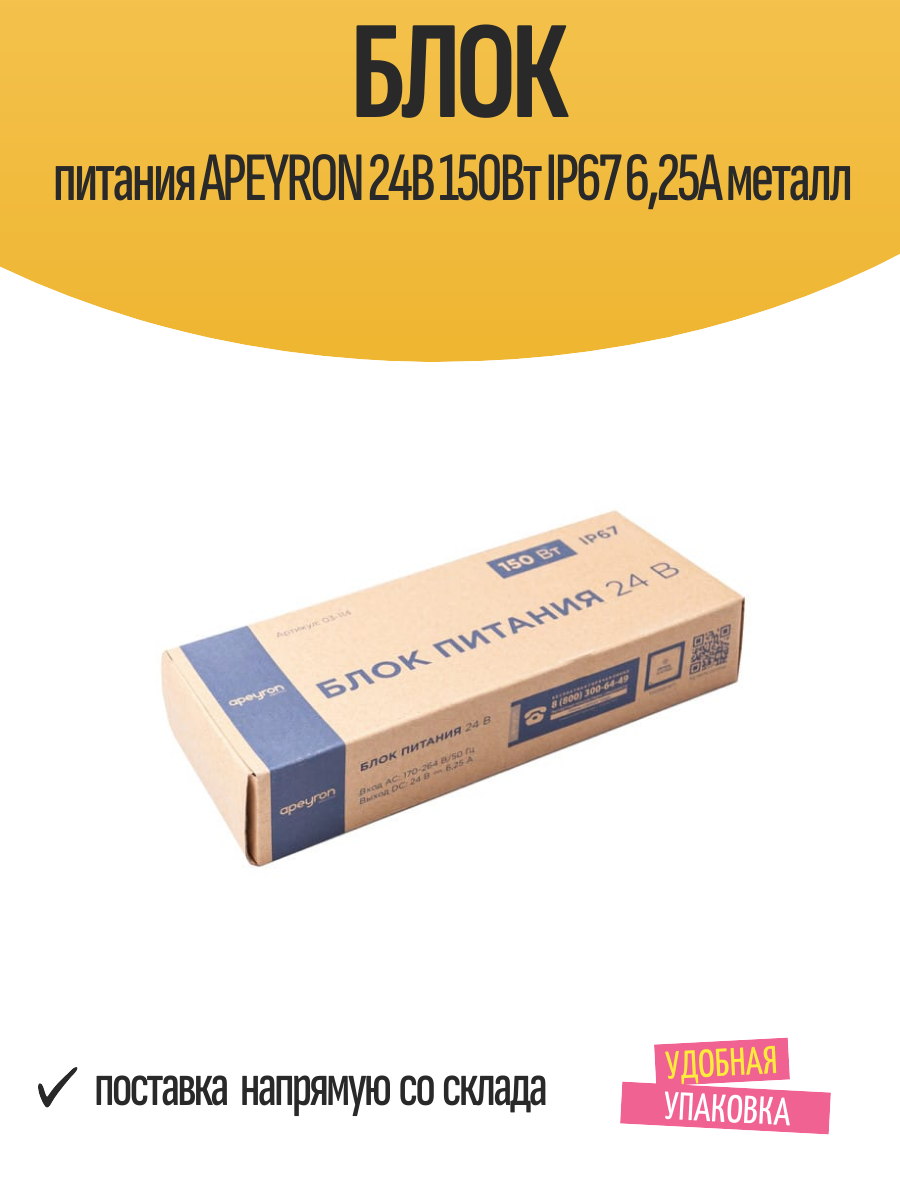 | Дополнительная информация | Блок питания APEYRON 12В 100Вт IP67 8,33А металл |