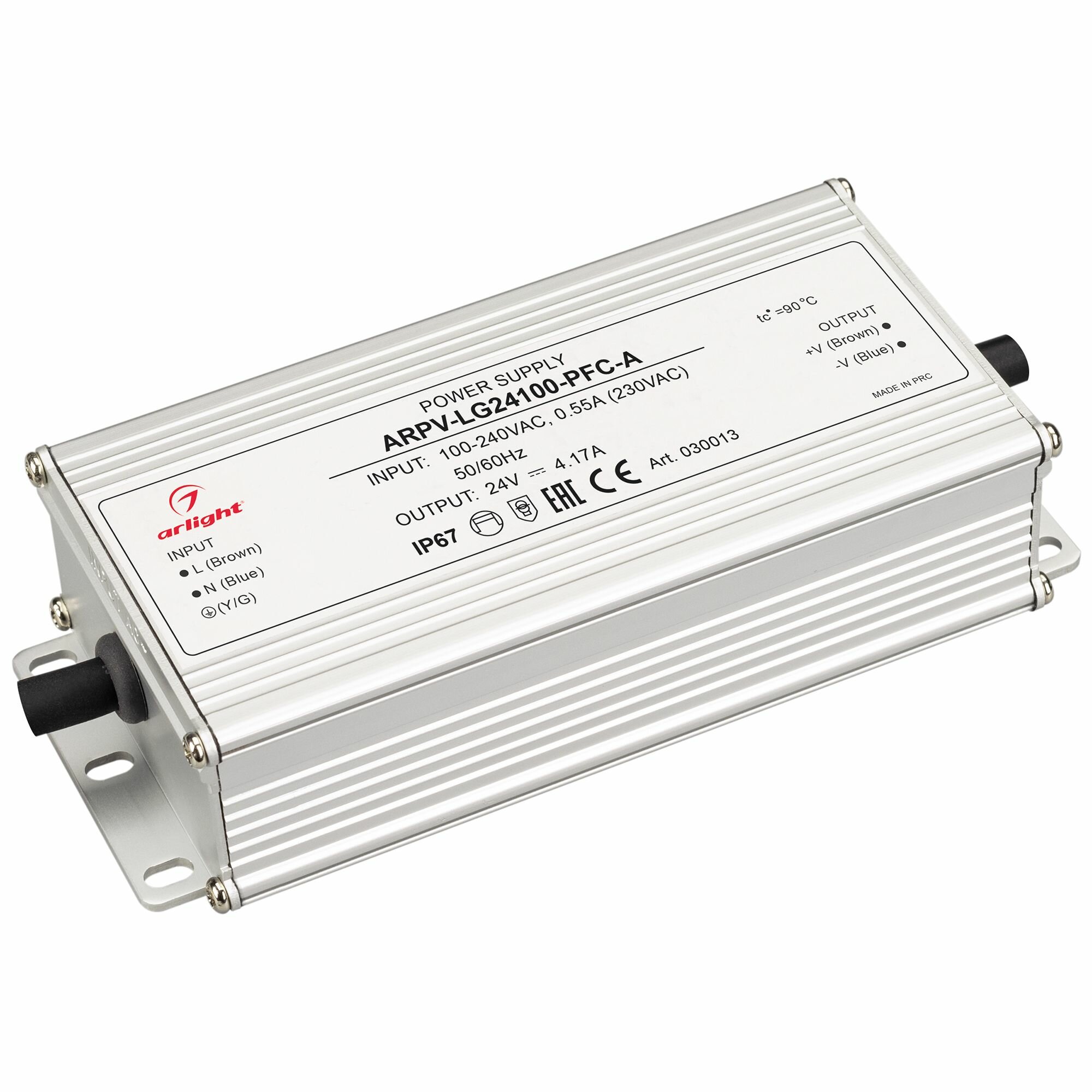 Источник напряжения с гальванической развязкой для светодиодных изделий. Входное напряжение 100-240 VAC. Выходные параметры: 24 В, 4.17 А, 100 Вт. Встроенный PFC >0.95. Герметичный алюминиевый корпус IP 67. Рабочая температура -40…+70C⁰. Габаритные размеры длина 158 мм, ширина 67.5 мм, высота 35.5 мм. Гарантийный срок 5 лет.